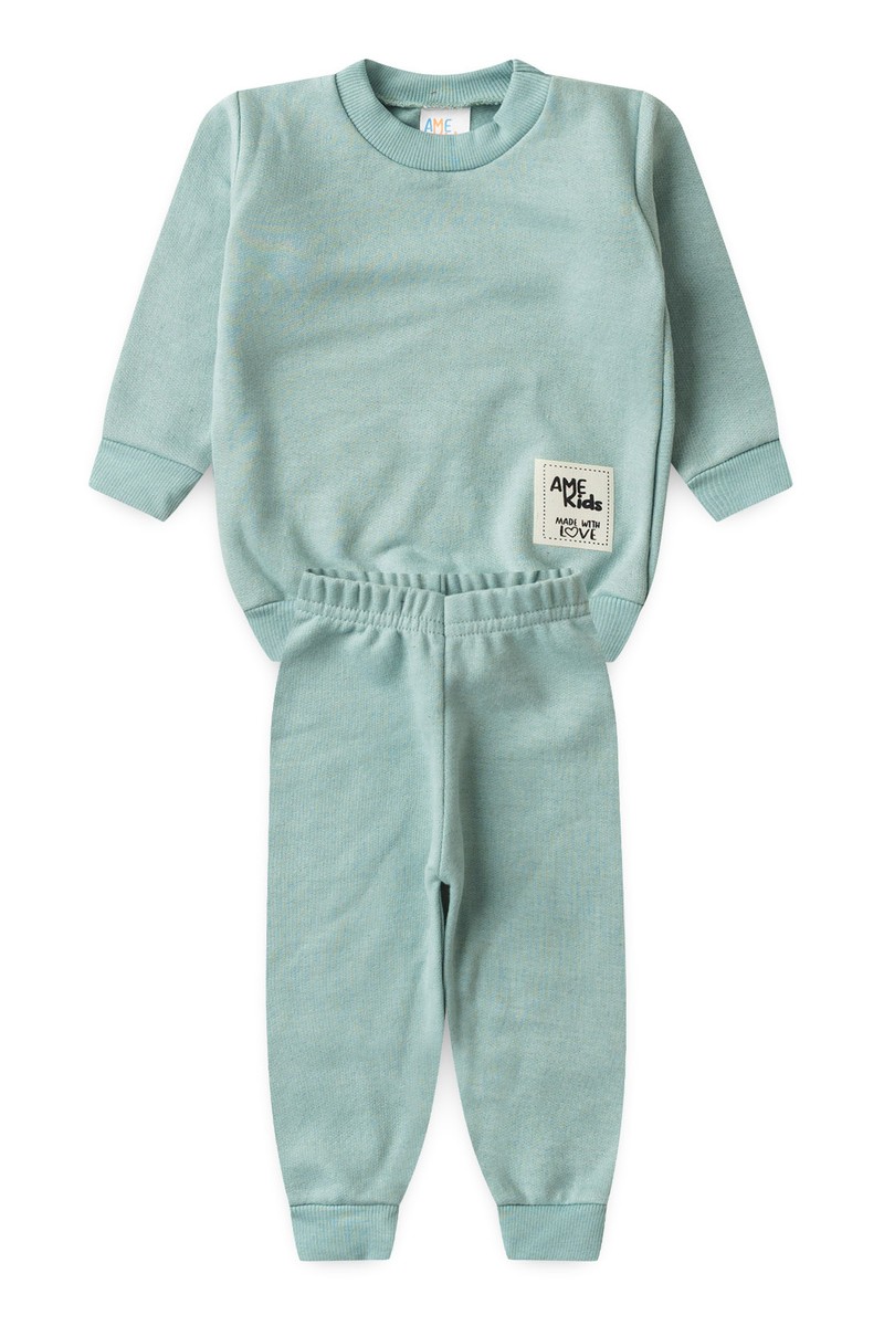 Conjunto Blusa Manga Longa e Calça Moletom - Verde Jade - Ame Kids