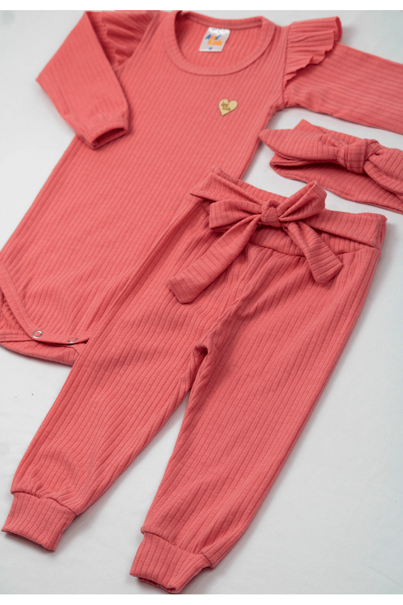 Conjunto Body Canelado Menina - Pêssego - Ame Kids