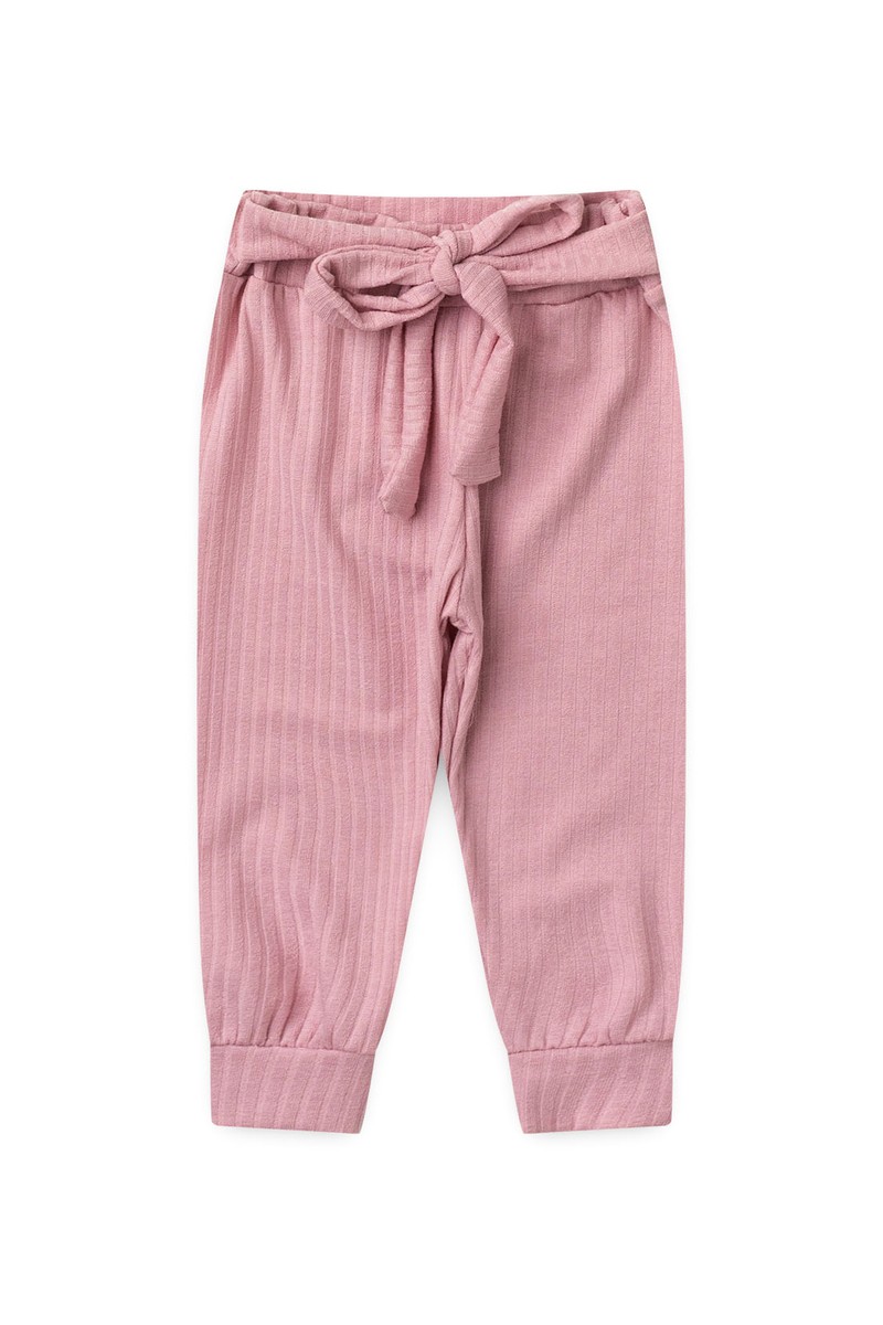A calça canelada acompanha amarração frontal decorativa e modelagem confortável, garantindo liberdade para os movimentos do bebê ao longo do dia. Para completar, a faixa de cabelo coordenada transforma o look em uma produção pronta e harmoniosa.