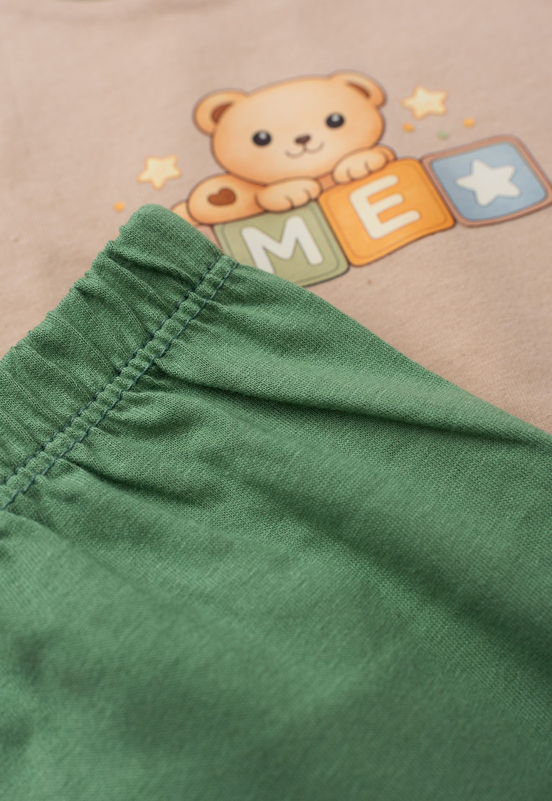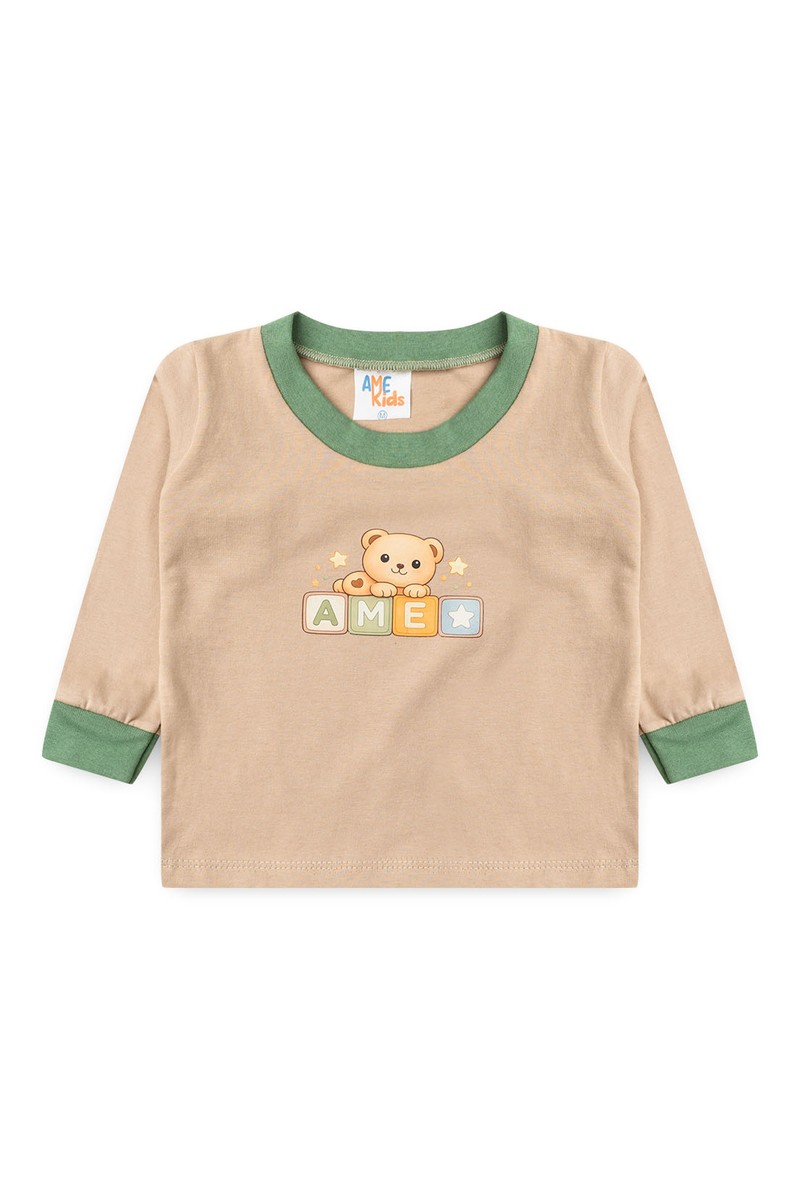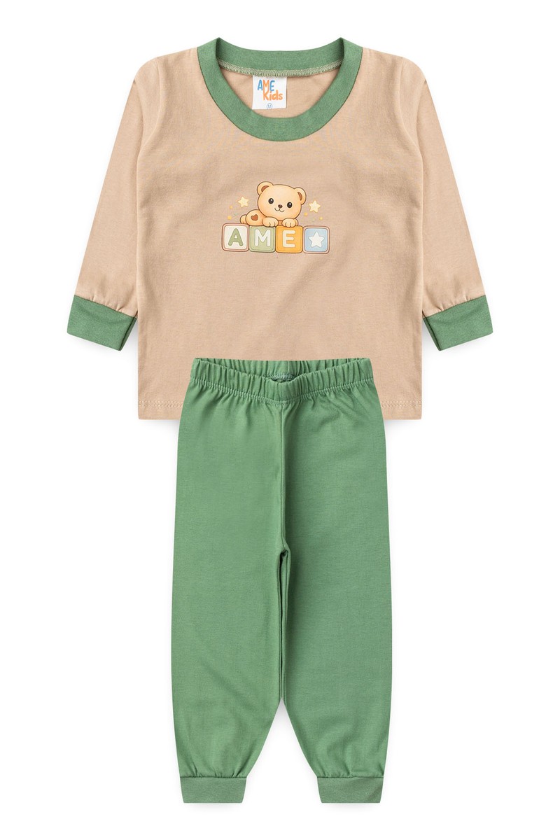 Conjunto Pijama Bebê Meia Estação Blusa e Calça - Ursinho Caqui - Ame Kids