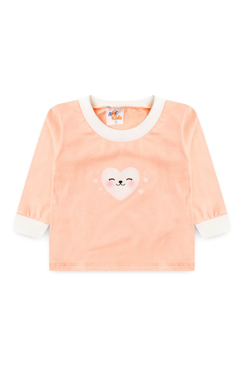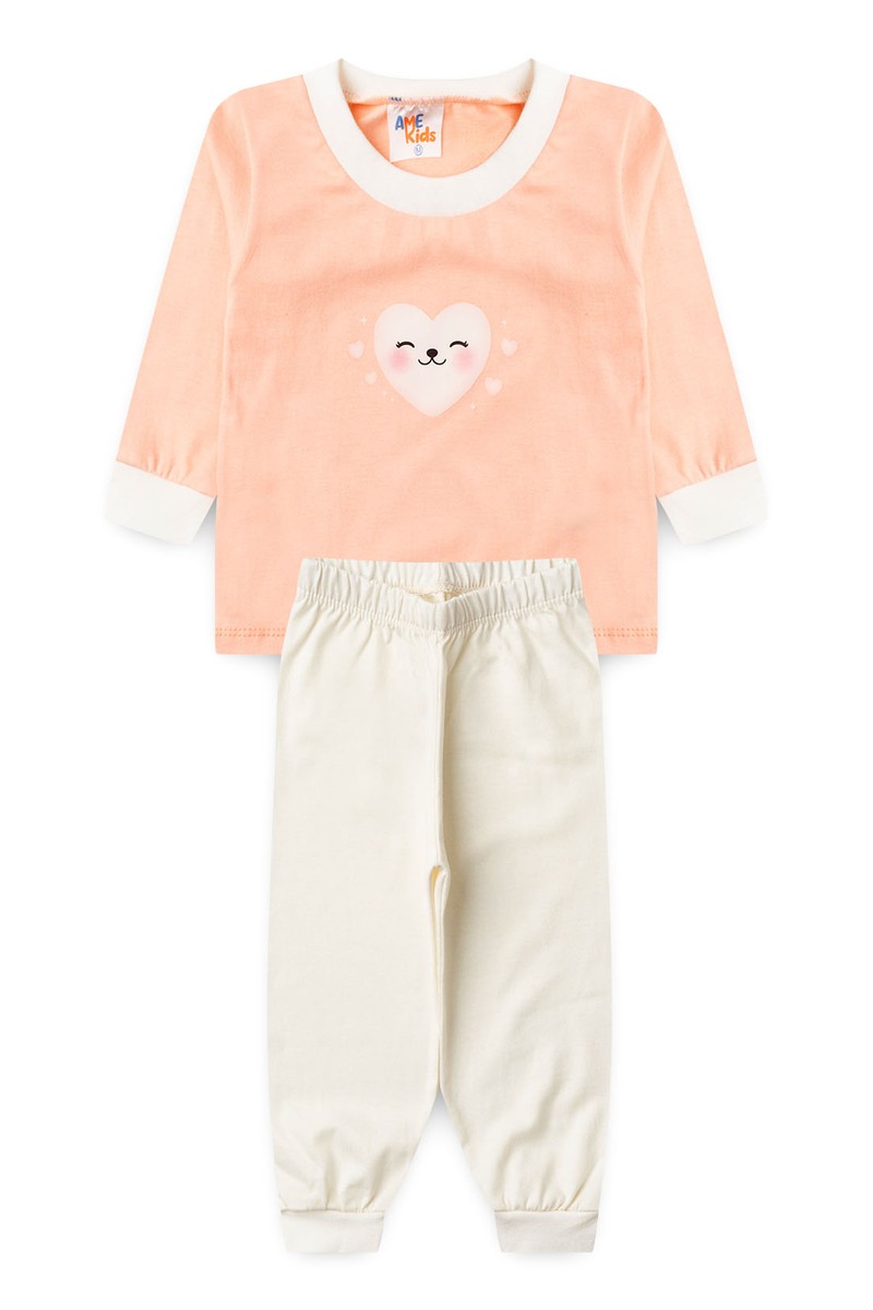Conjunto Pijama Bebê Meia Estação Blusa e Calça - Coração Salmão - Ame Kids